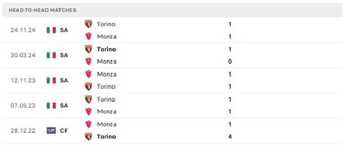 Lịch sử đối đầu của Monza vs Torino